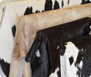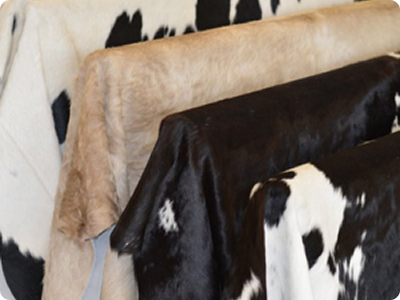Hair on hides in natural state Dyed hair on hides Printed / Stenciled hair on hides. Patchwork carpets, leather cushions, etc.