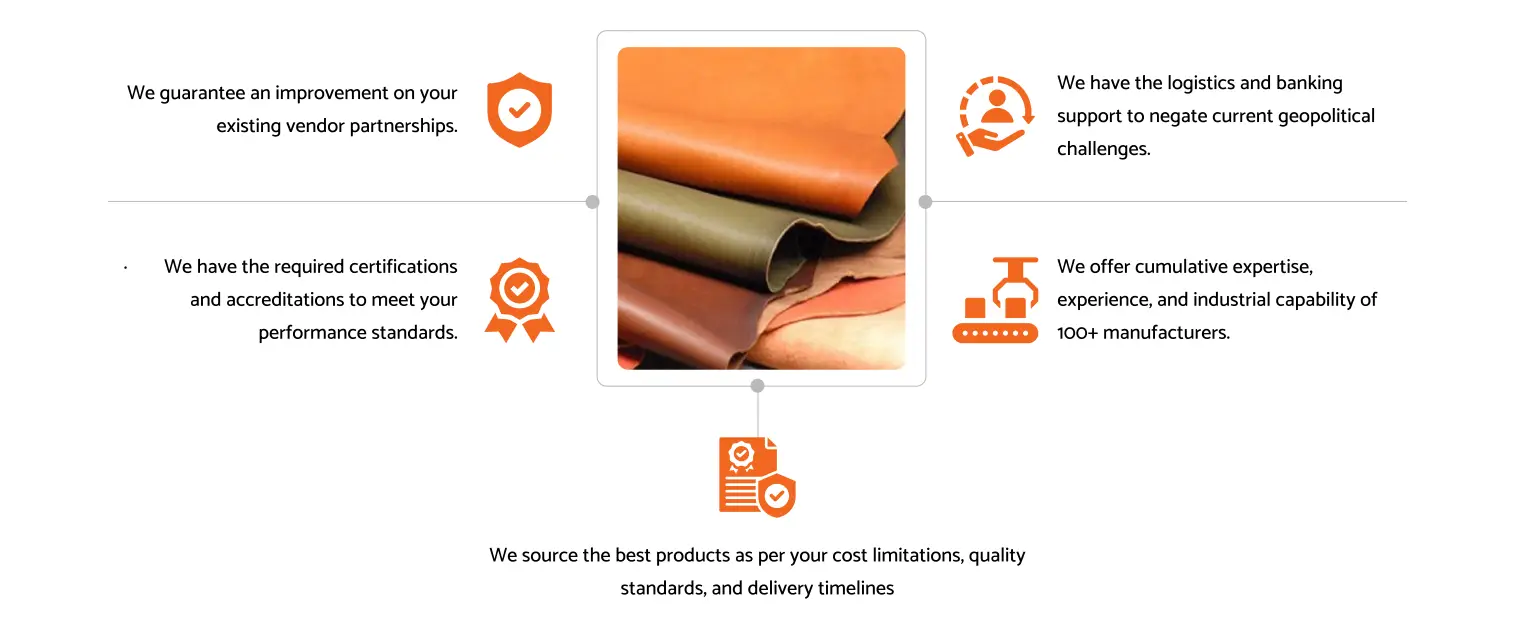 We are consortium of 100+ leather manufacturers in India for all industrial requirements. Our key expertise is in processed and semi processed leather from cow, buffalo, sheep, and goat skins which is ideal for manufacturers of safety shoes, safety gloves, car seat covers, furniture upholstery, saddlery, bags, wallets, jackets, coats, belts, and other fashion accessories.